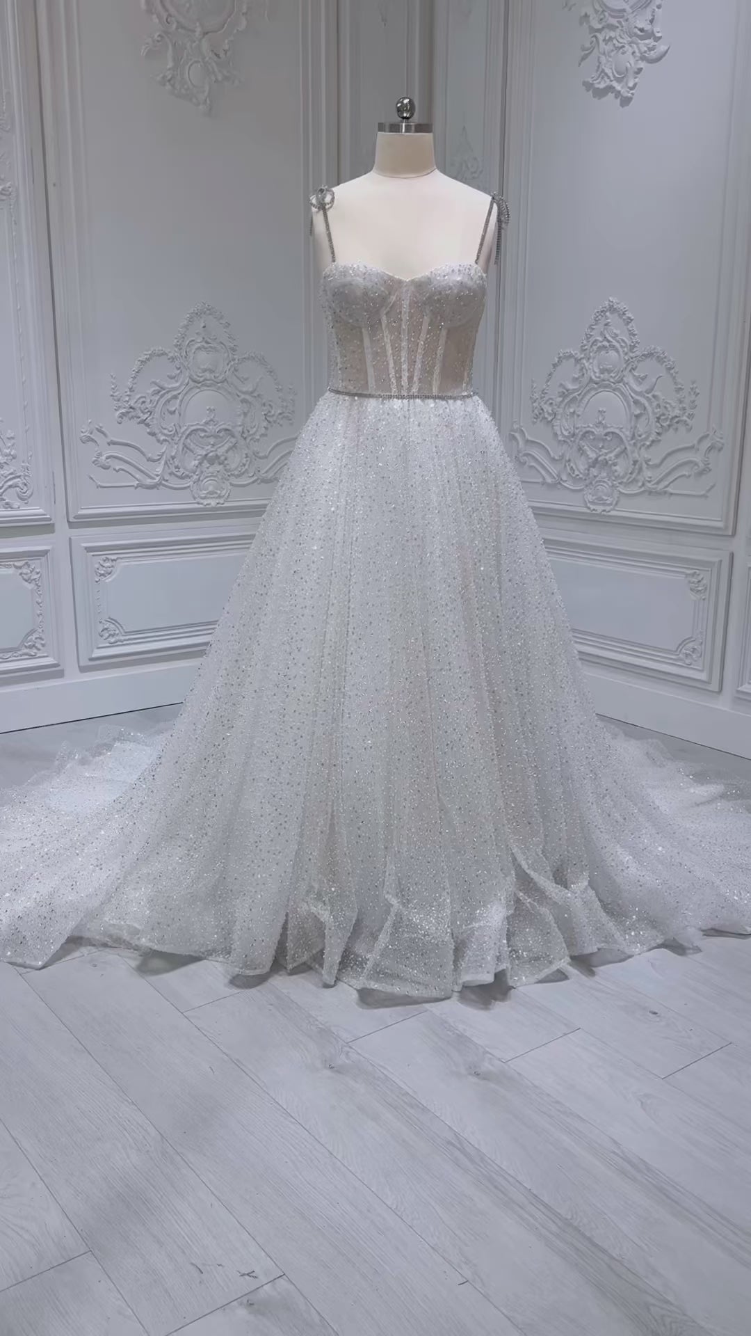 Stock clearance! Bridal size 12! White spaghetti strap sparkling Aline wedding dress