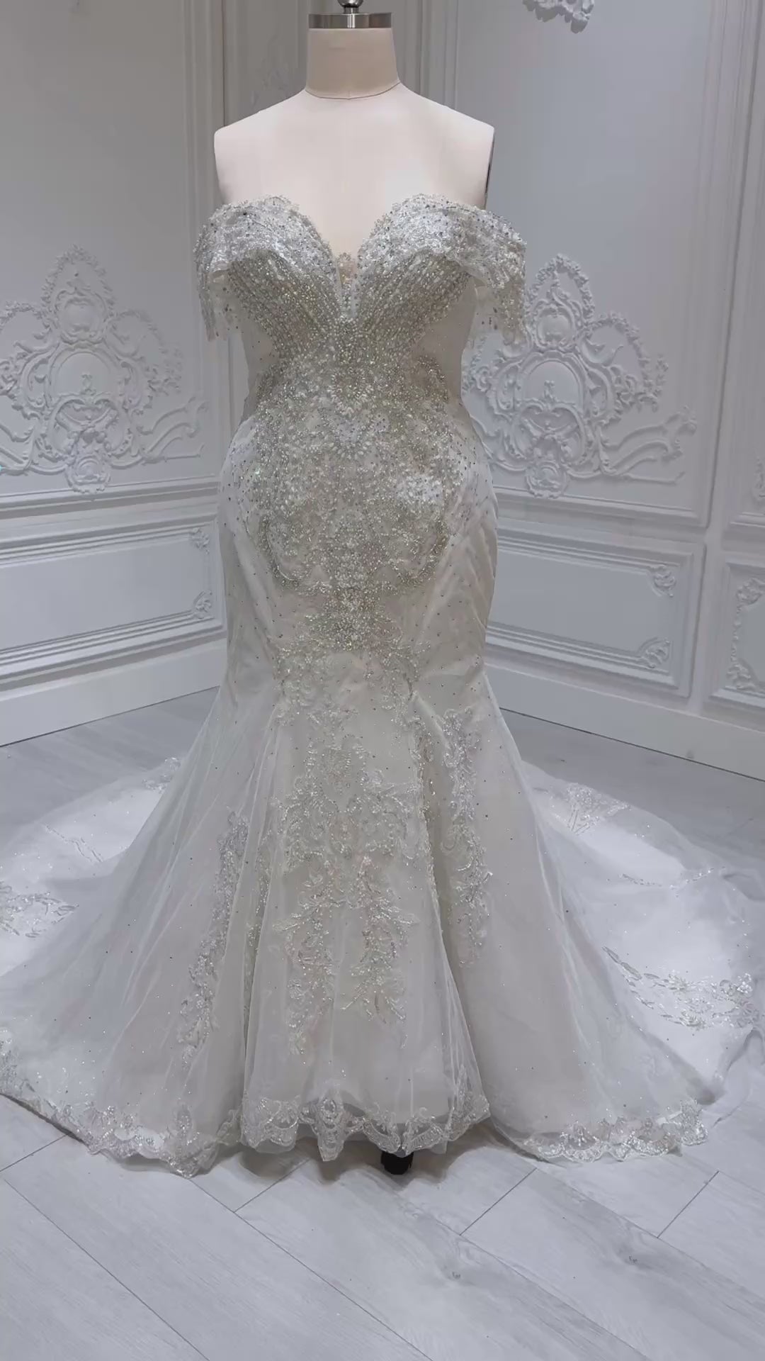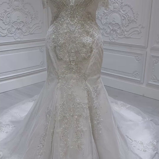 Stock clearance! Bridal size 16. Off white feather with beading lace bling mermaid wedding dress