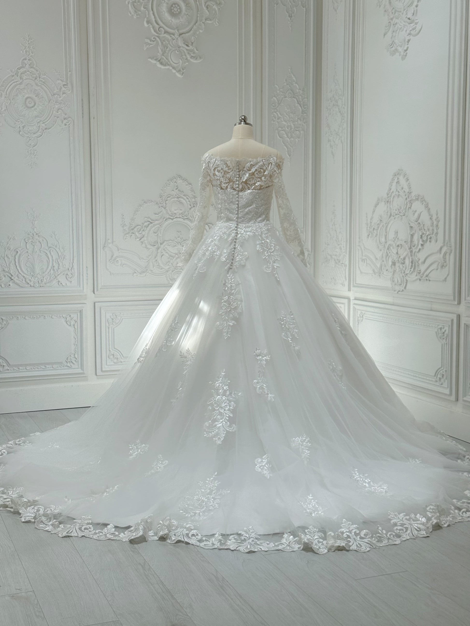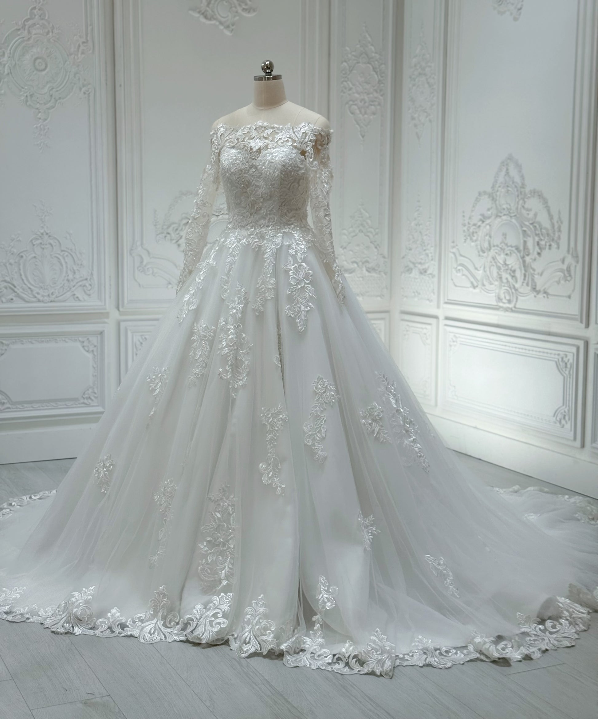 Stock Clearance! Bridal size 4! Custom-made off the shoulder with long sleeve classic lace Aline wedding dress