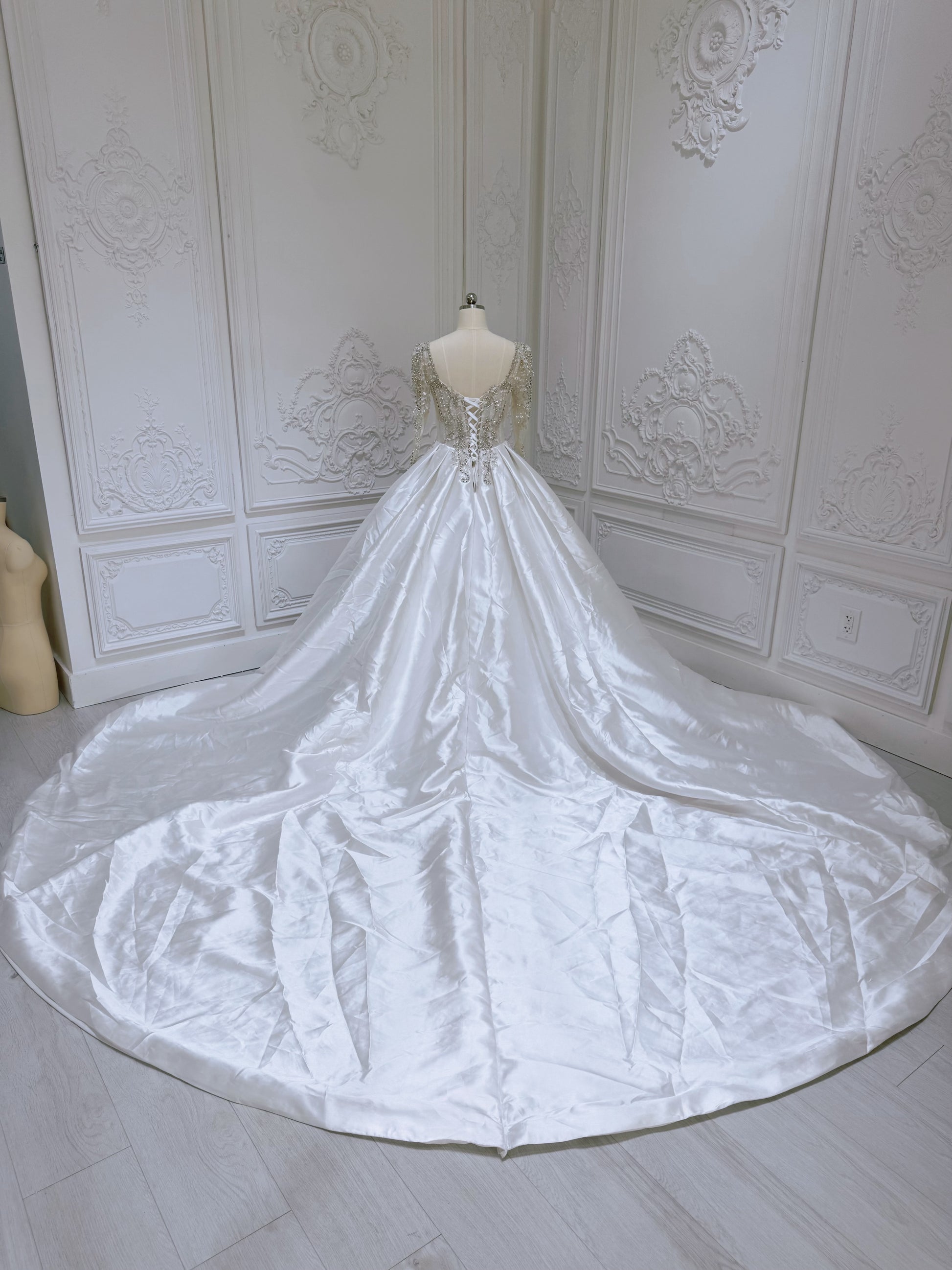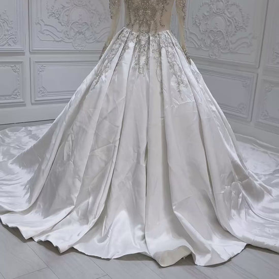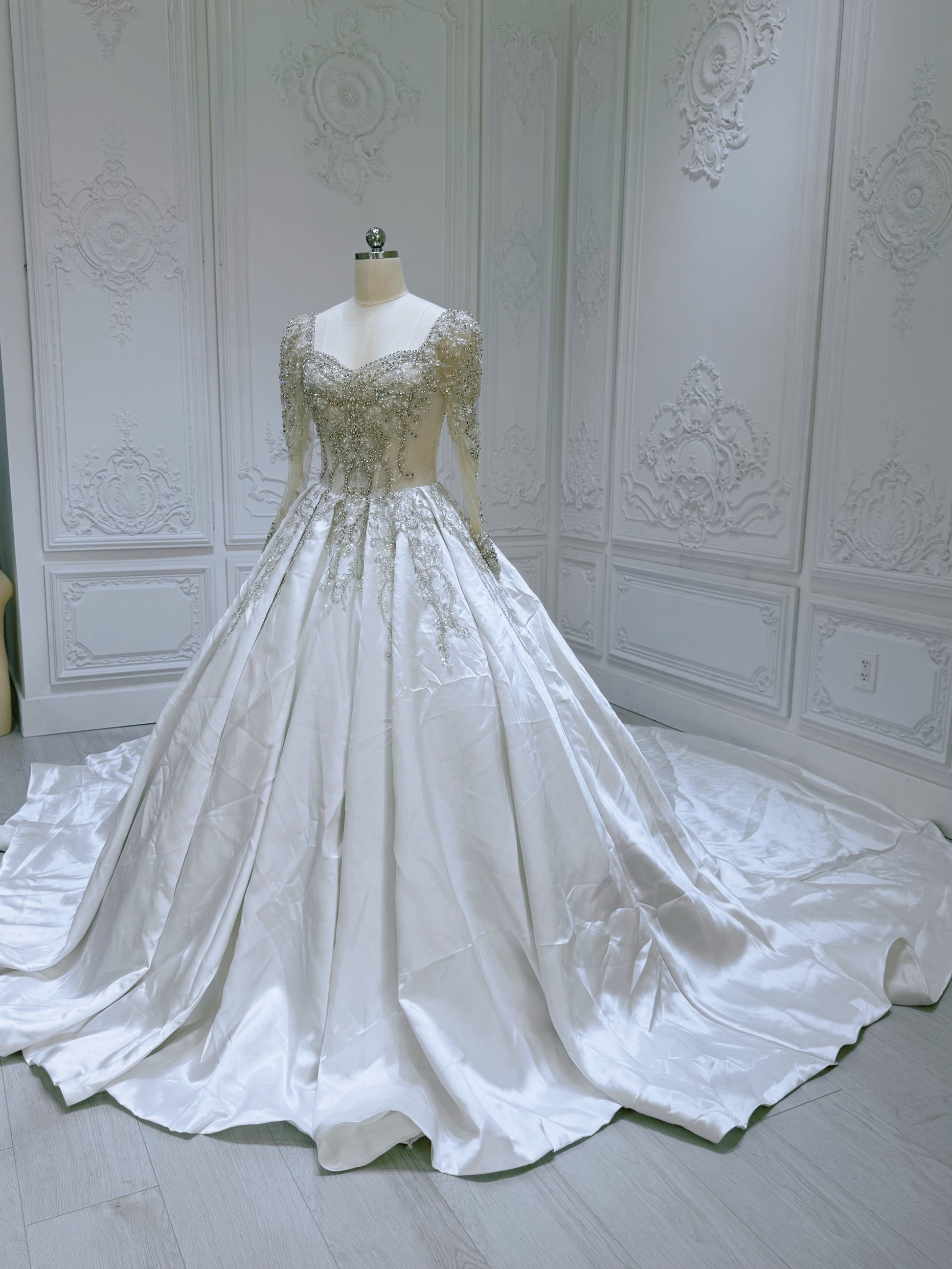 Stock Clearance! Bridal size 6! Beading lace long sleeve satin ballgown wedding dress