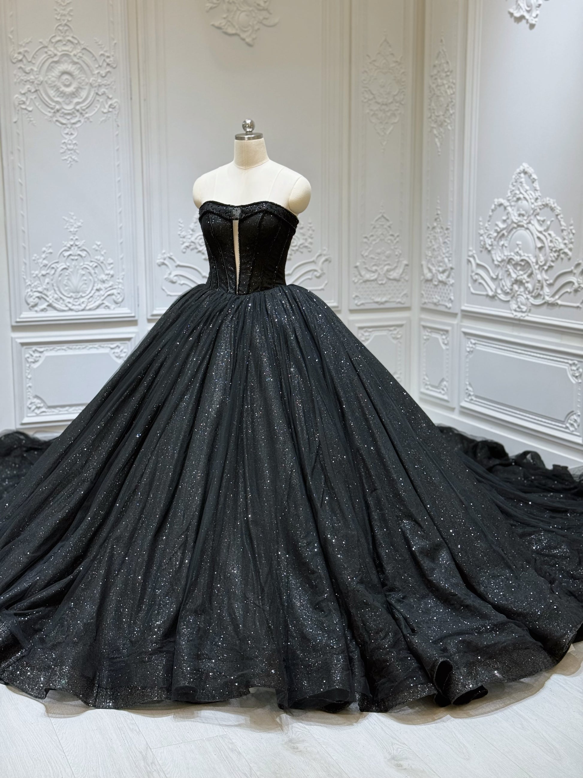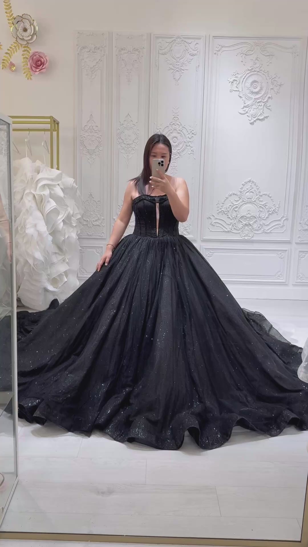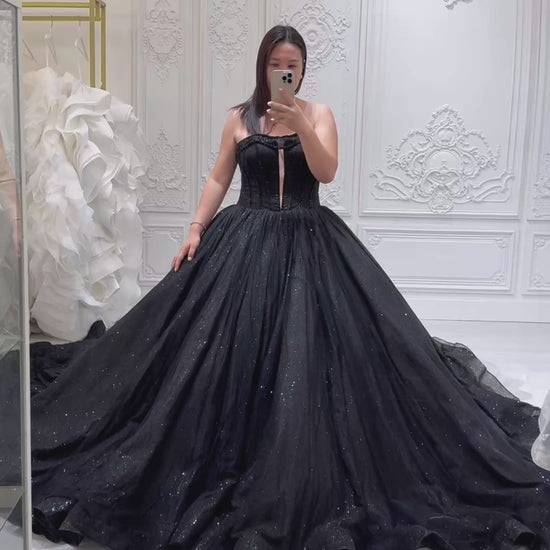 Stock clearance! Bridal size 8! Black strapless sparkling ballgown Gothic wedding dress