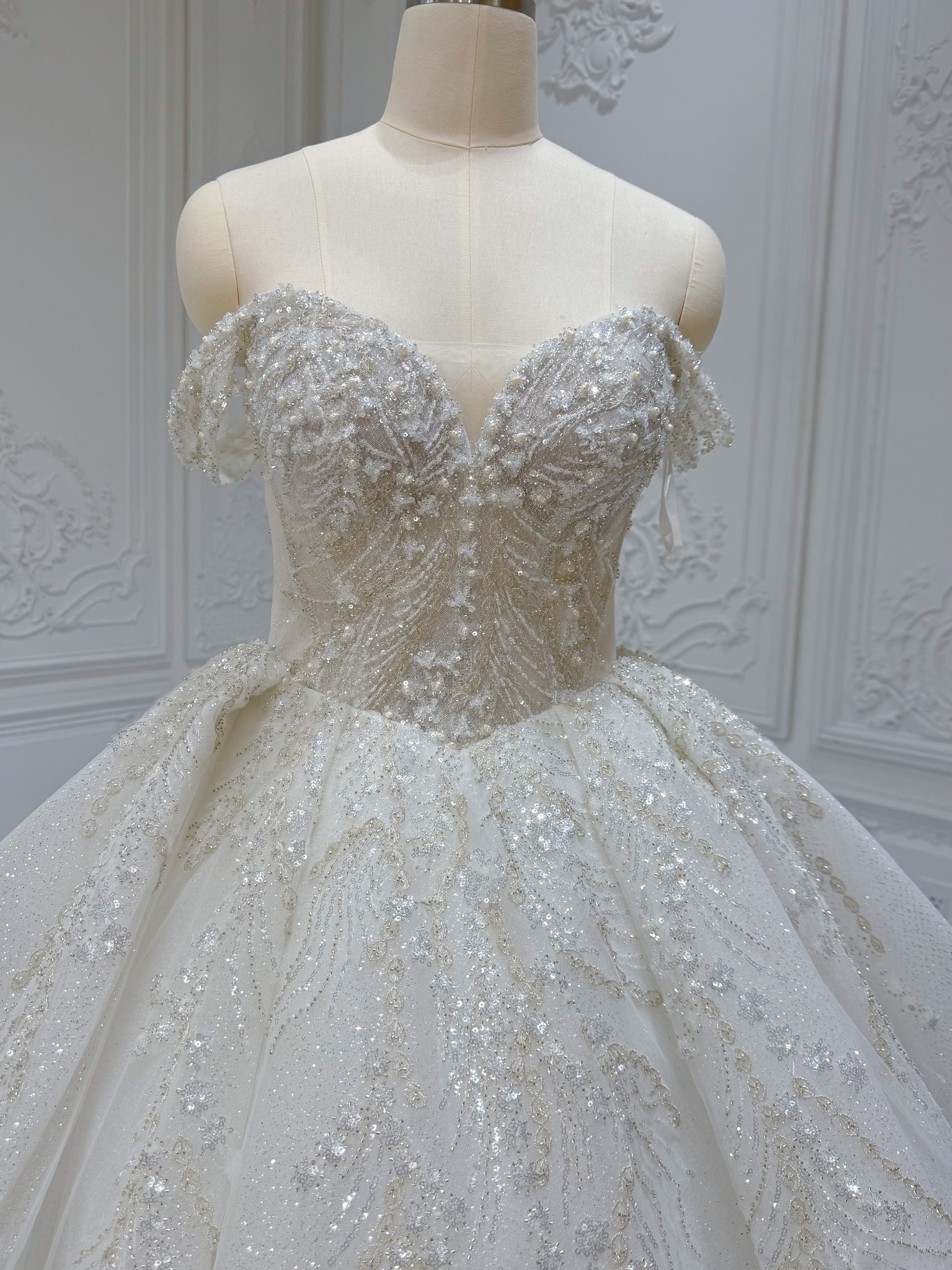 Stock Clearance! Bridal size 6! Luxury beading sparkling off the shoulder princess ballgown fairy wedding dress