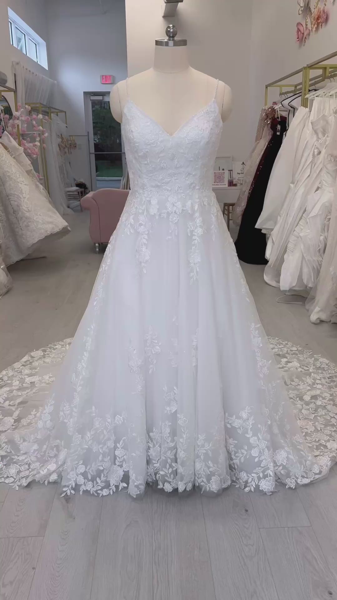 Stock Clearance! Plus size 18! Stock of white spaghettini strap V-Neck lace embroidered Aline floral wedding dress
