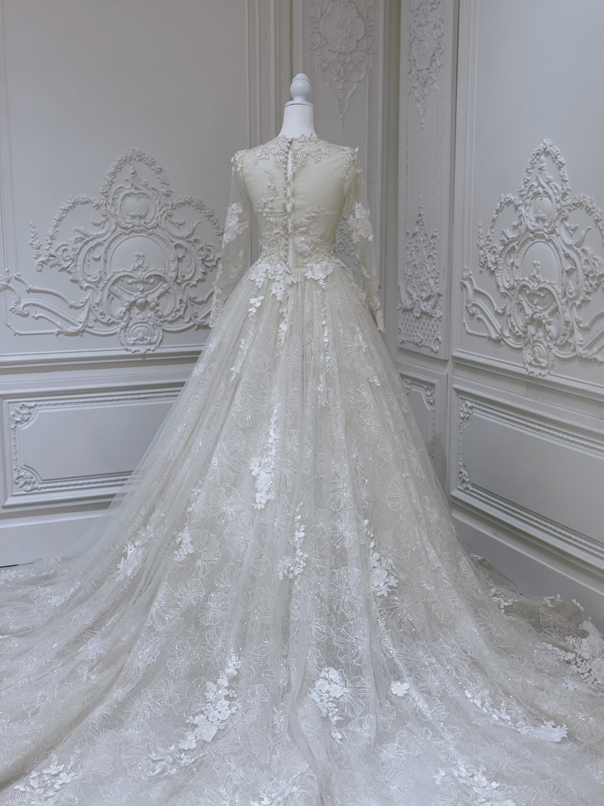 Stock clearance floor sample! Size 2. Ivory long sleeve lace Aline wedding dress