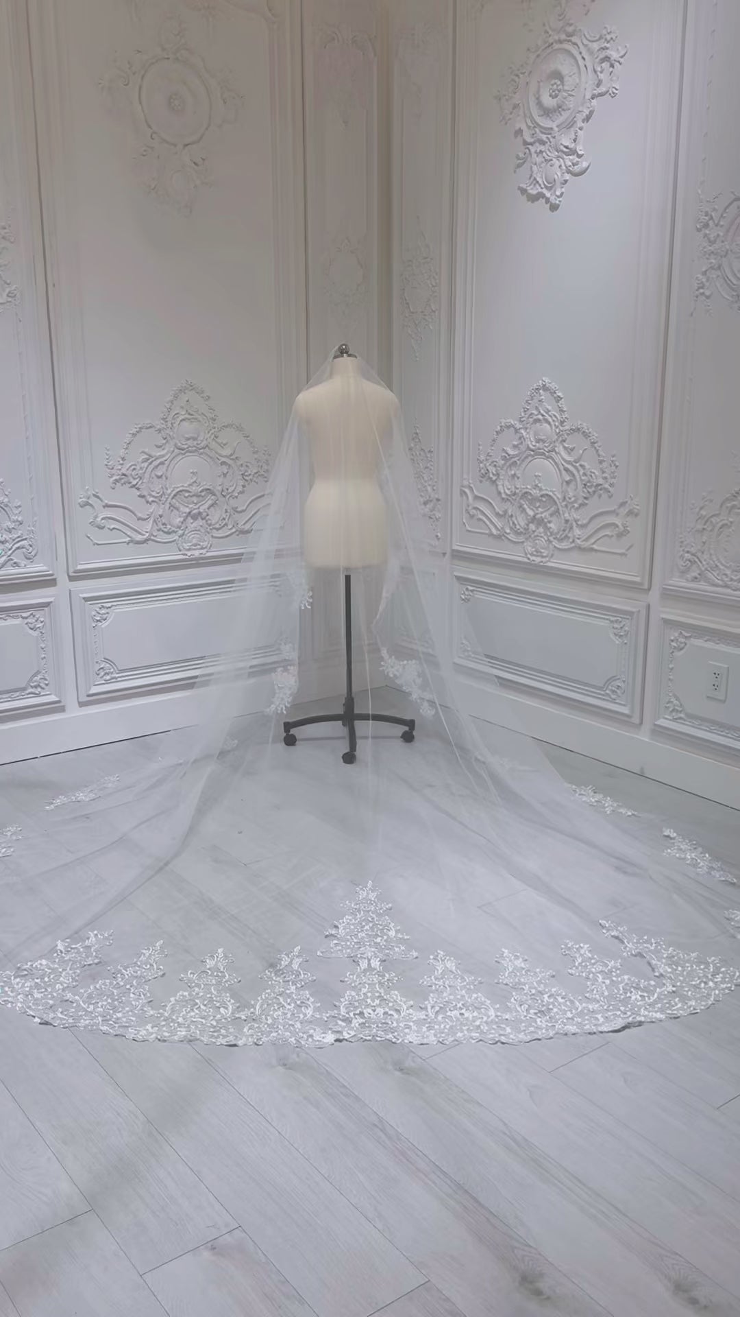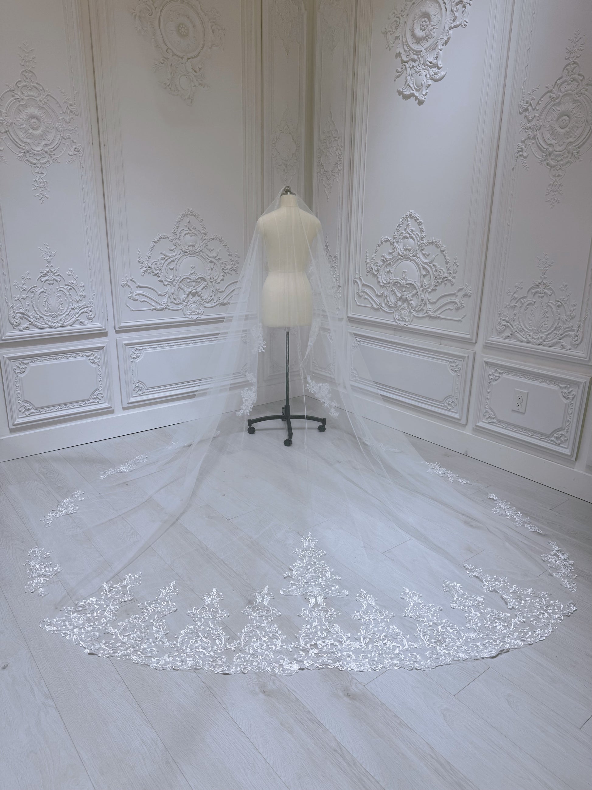 Stock sale of Lace embroidered bridal long wedding veil