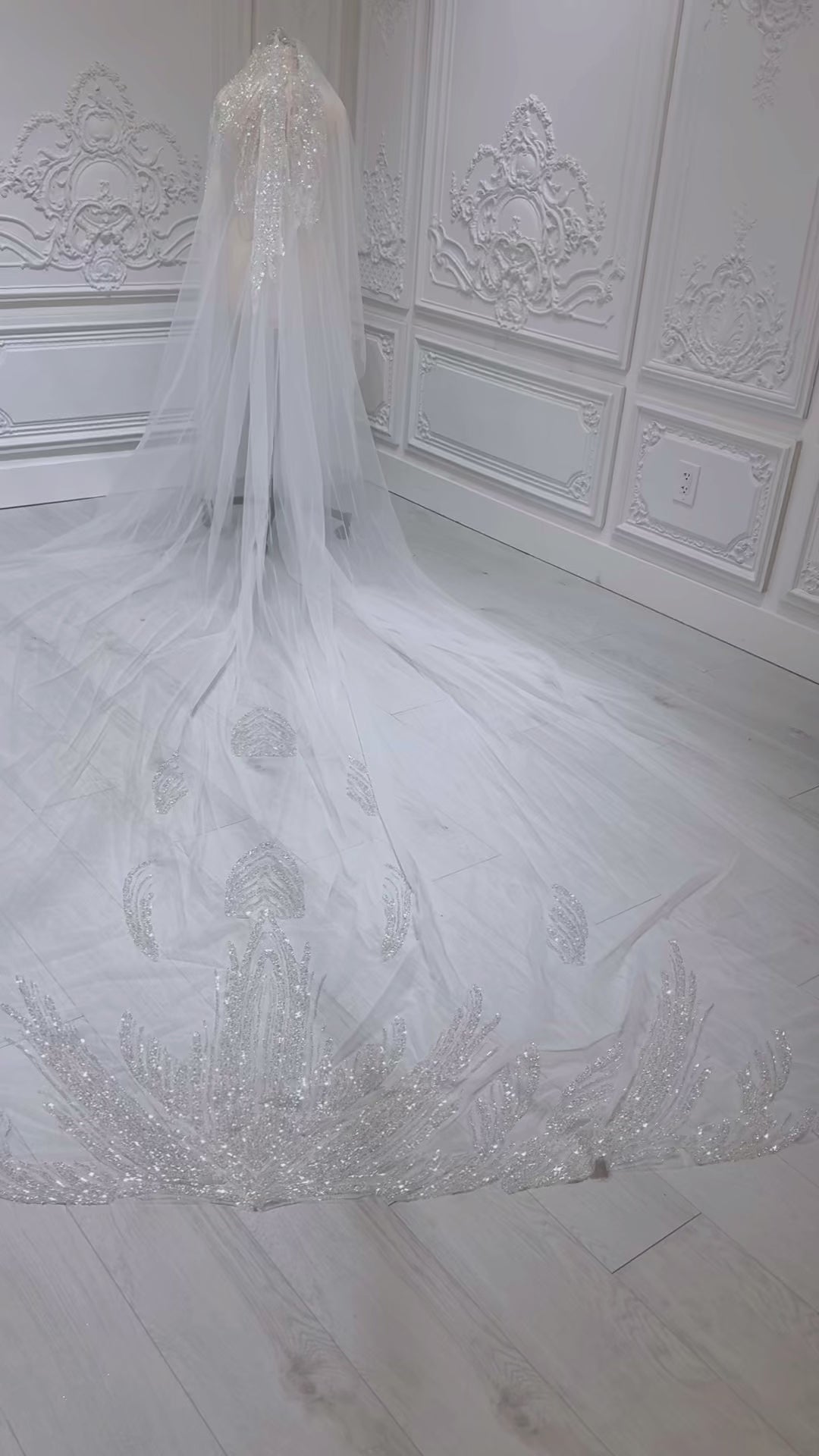 luxury beading 2 tiers wedding veil with blusher. Bridal veil with royal train