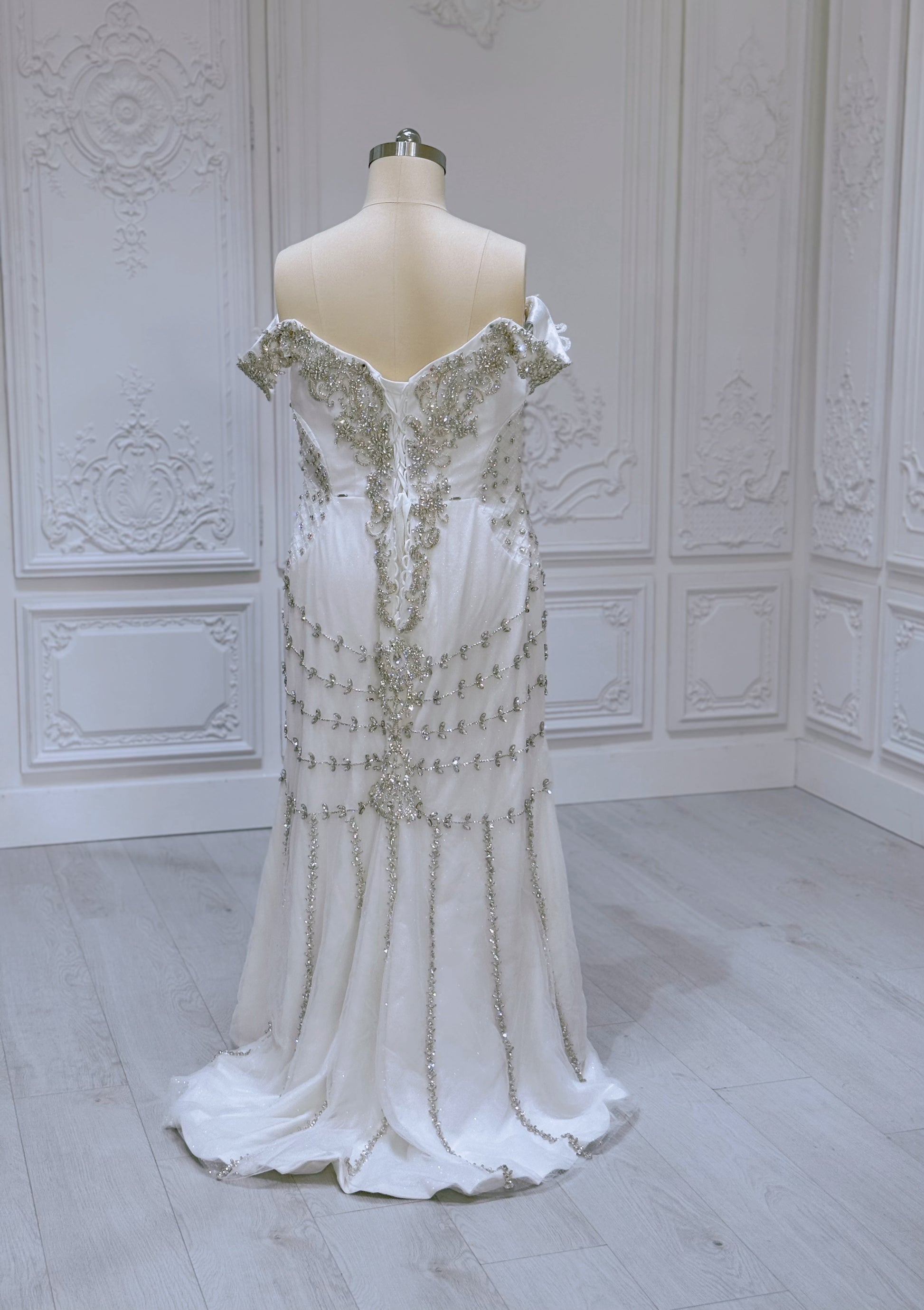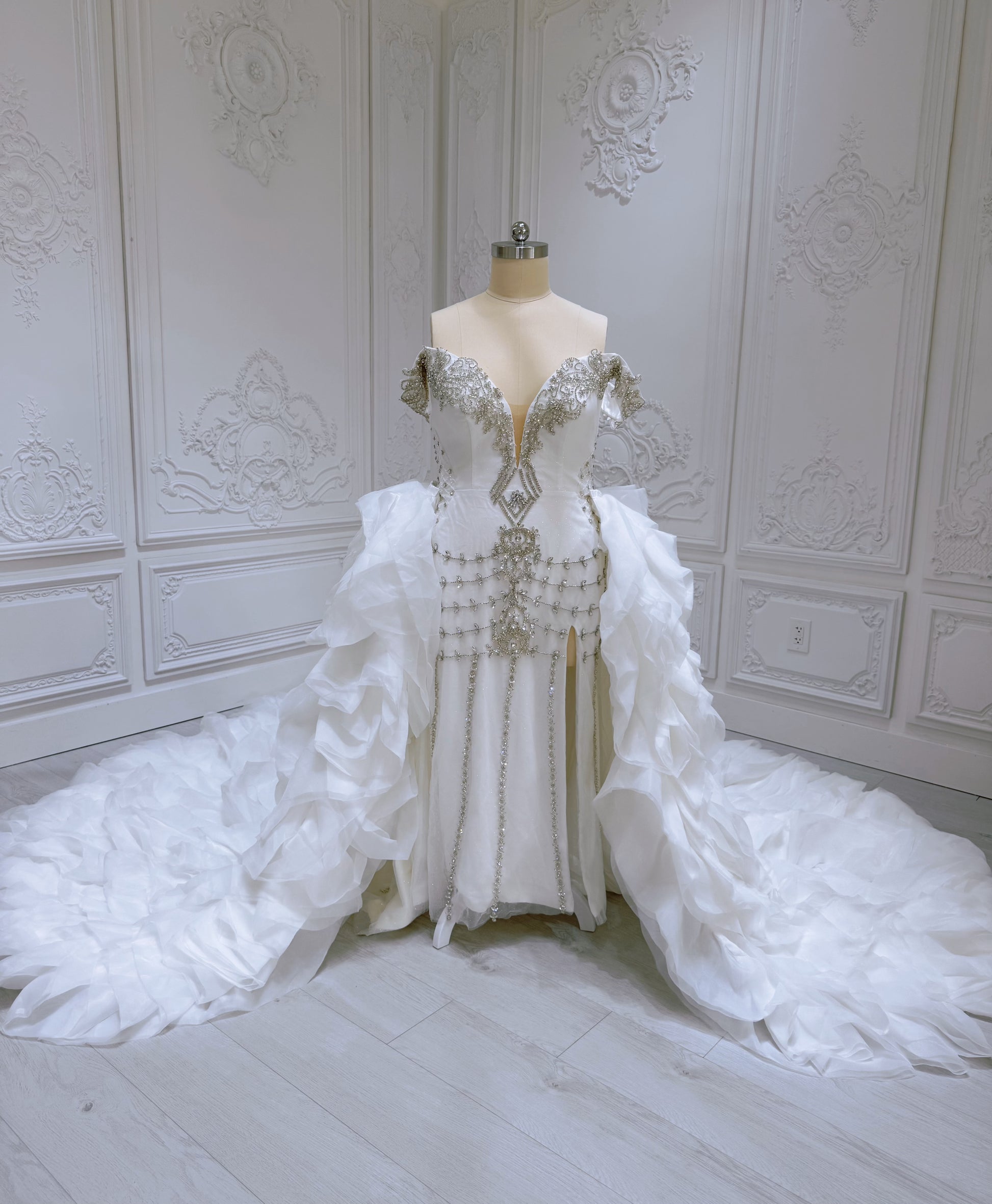 TBC-2IN1-0036 Made to order Luxury crystal beaded 2 in 1 mermaid with detachable ruffled skirt