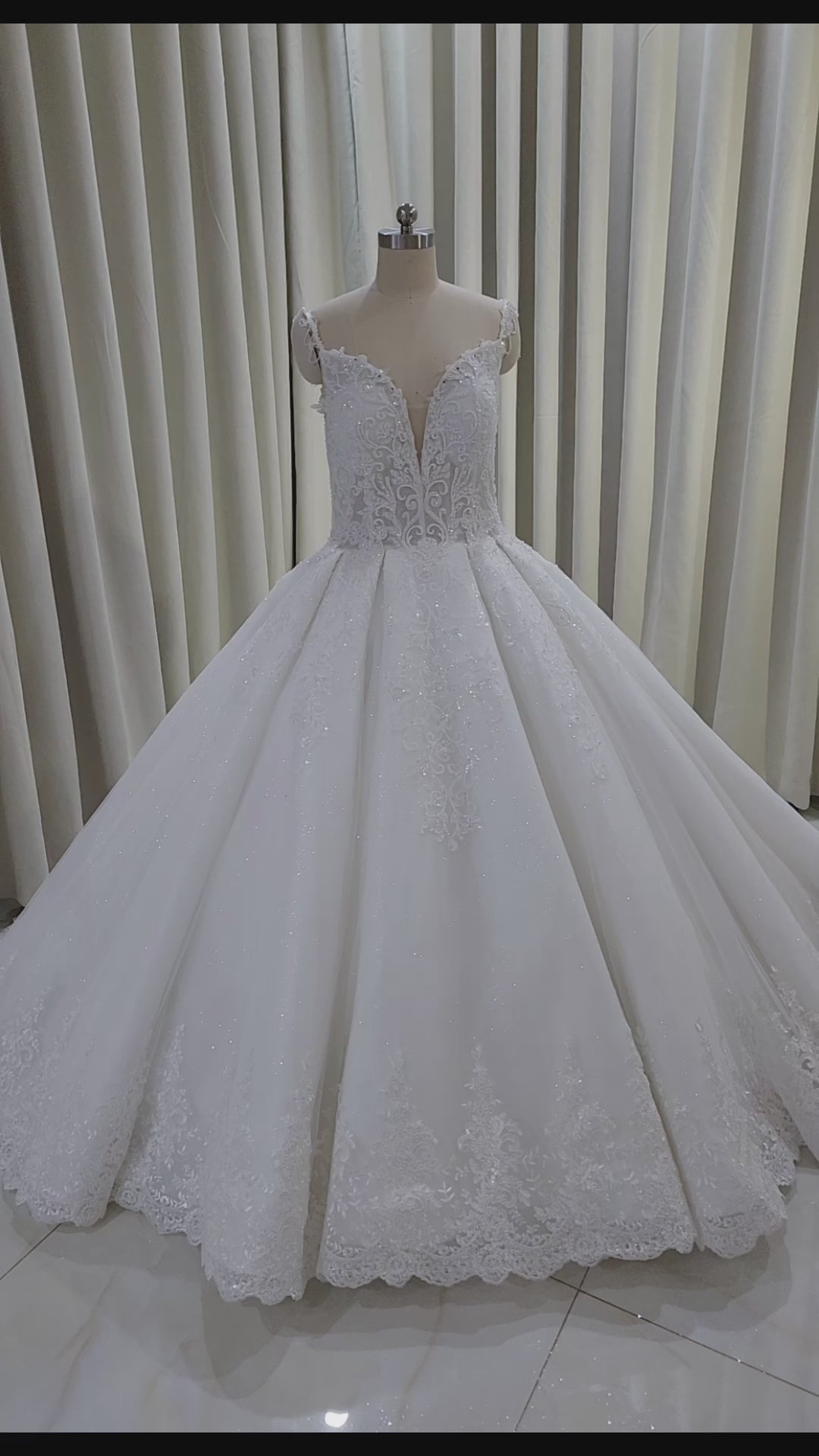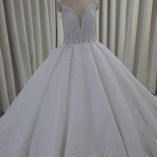 TBC-CM008 Made to order Deep V lace embroidered sparkling royal ballgown wedding dress