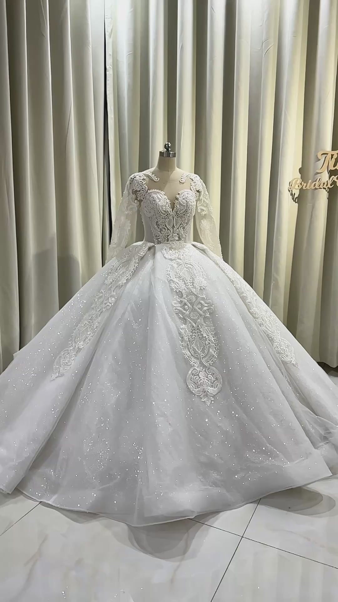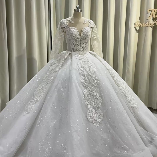 TBC-CM009 Made to order lace embroidered with beading long sleeve ballgown style royal wedding dress