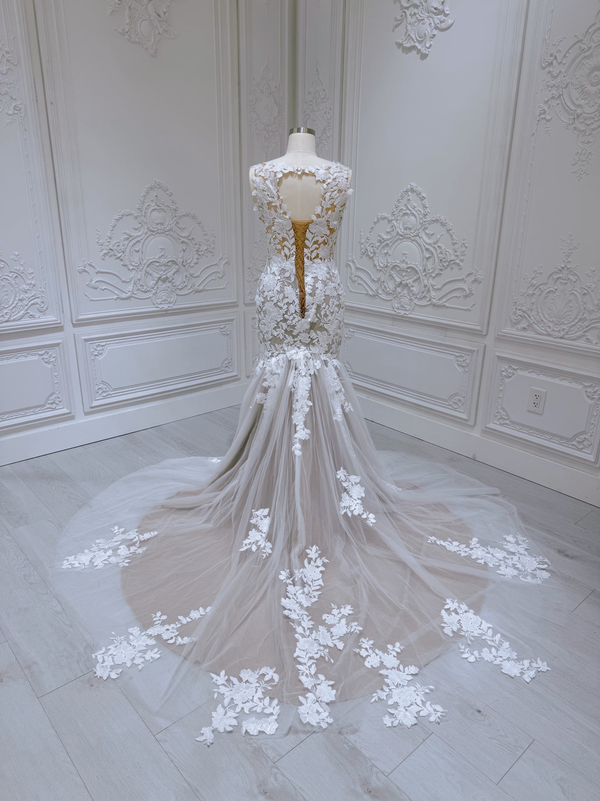 TBC-A017 Made to order lace mermaid champagne wedding dress
